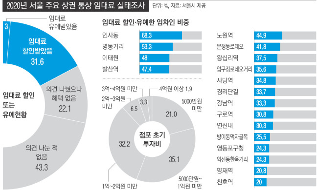 서울 주요 상권 매출 36% ‘뚝’…임대료는 0.6% ‘찔끔’ 내려