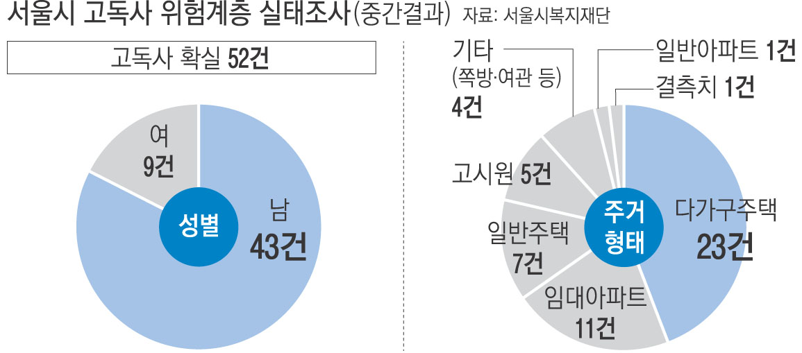 서울에서 발생한 ‘고립사’(고독사) 사례를 살펴보니 성별로는 남성, 연령별로는 60대 초반, 주거 형태로는 다가구주택인 경우가 많은 것으로 나타났다.