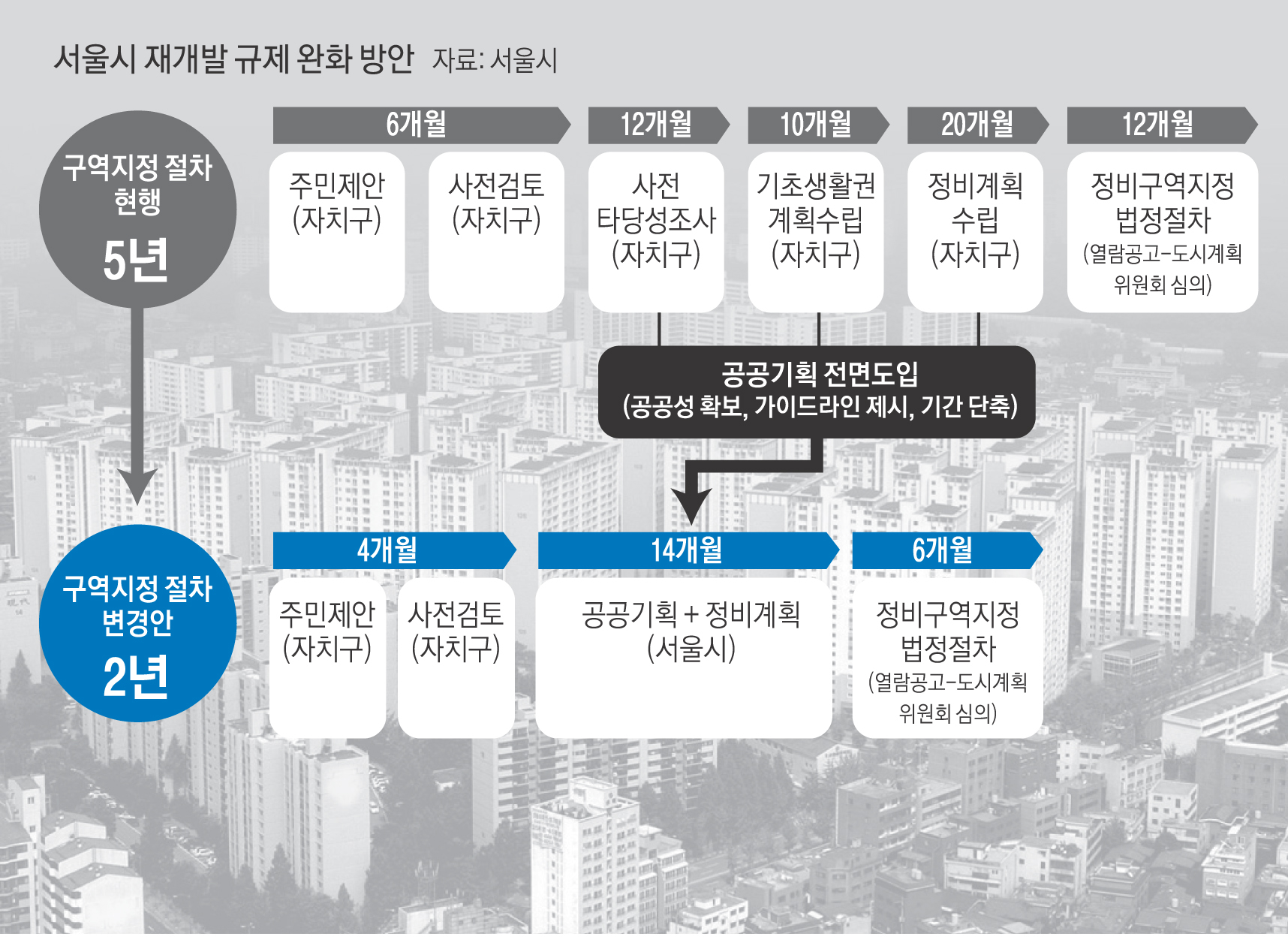 오세훈 서울시장이 ‘재개발 촉진책’을 발표했다. 재개발사업 ‘진입장벽’을 낮춘다는 취지로 주거정비지수제를 폐지하고, 서울시가 정비구역 지정 절차를 주도한다.
