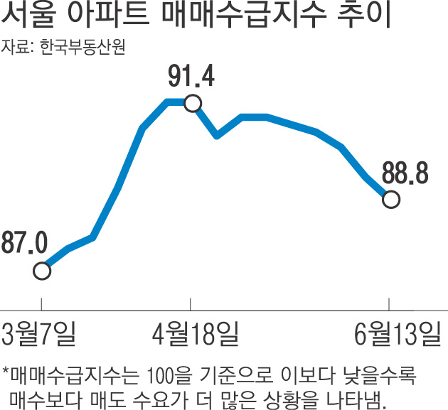 금리 상승세가 지속되면서 서울의 아파트 매매수요가 6주 연속 하락했다.