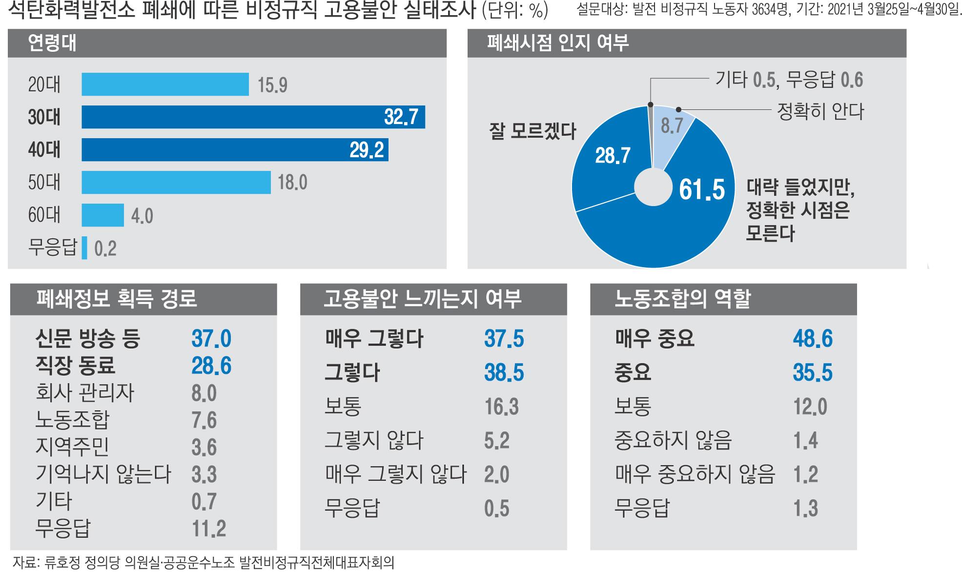 올해 3월 기준 전국의 석탄화력발전소 노동자는 정규직 1만3846명, 비정규직 1만1286명이다. 노동자들은 불안하다.
