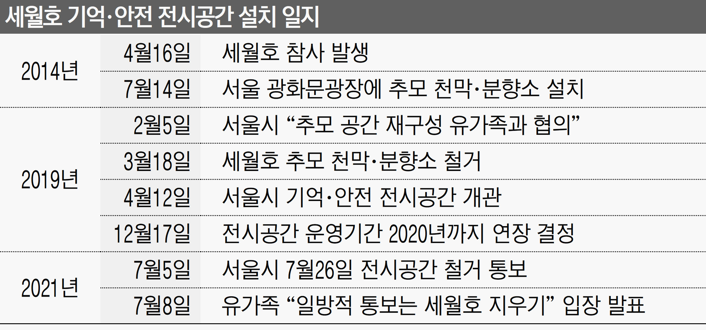 2014년 4월 16일 세월호 참사를 기억하기 위한 '세월호 기억공간'이 7년만에 서울 광화문 광장을 떠난다.
