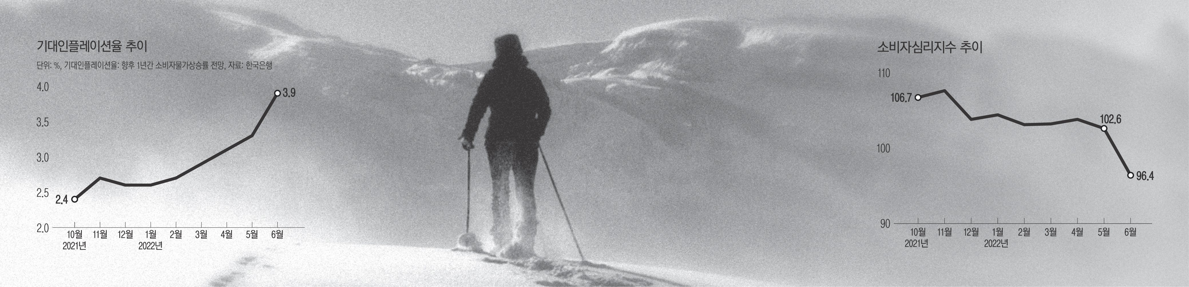 기대인플레이션율이 10년2개월 만에 최고치로 치솟았고, 소비자심리지수는 1년4개월 만에 100을 밑돌았다.