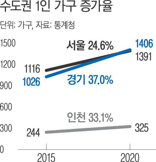 경기 5년간 1인 가구 증가율 ‘수도권 1위’