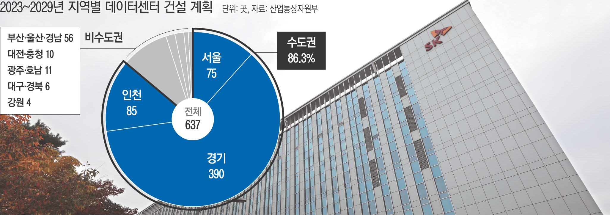 2029년까지 신설 계획인 데이터센터 637곳 가운데 550곳(86.3%)이 서울·경기·인천에 들어설 예정이다.