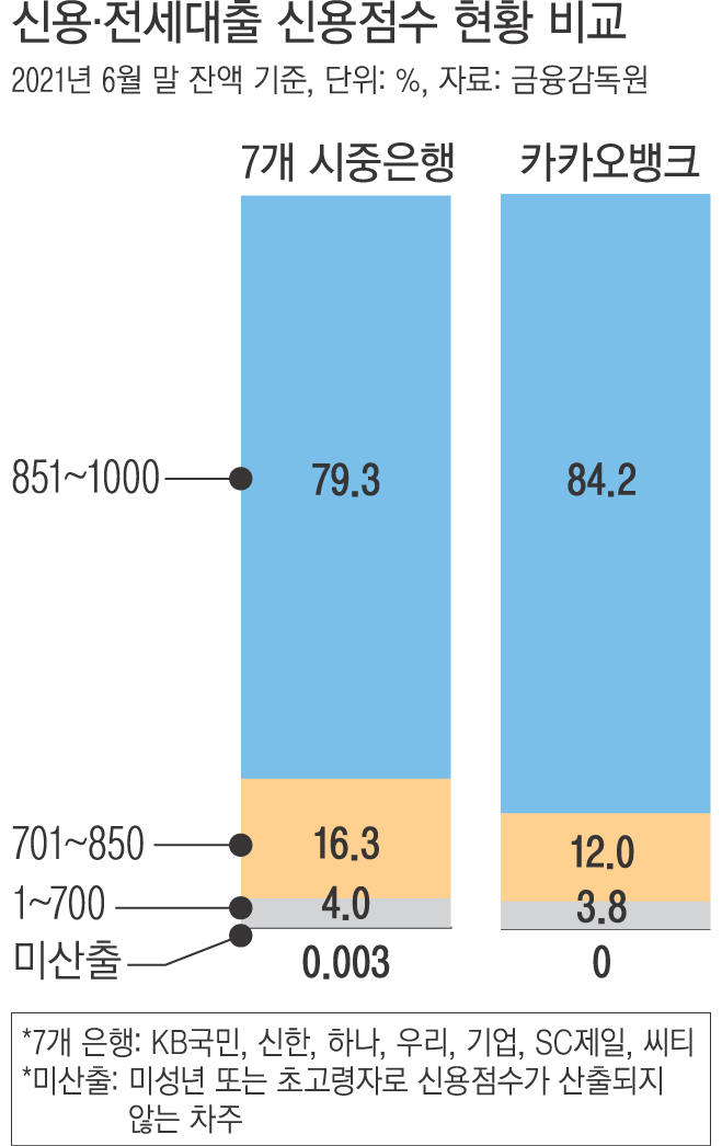 중신용자 대출 늘리겠다 약속한 ‘카뱅’, 은행보다 비중 낮아…설립 취지 ‘무색’