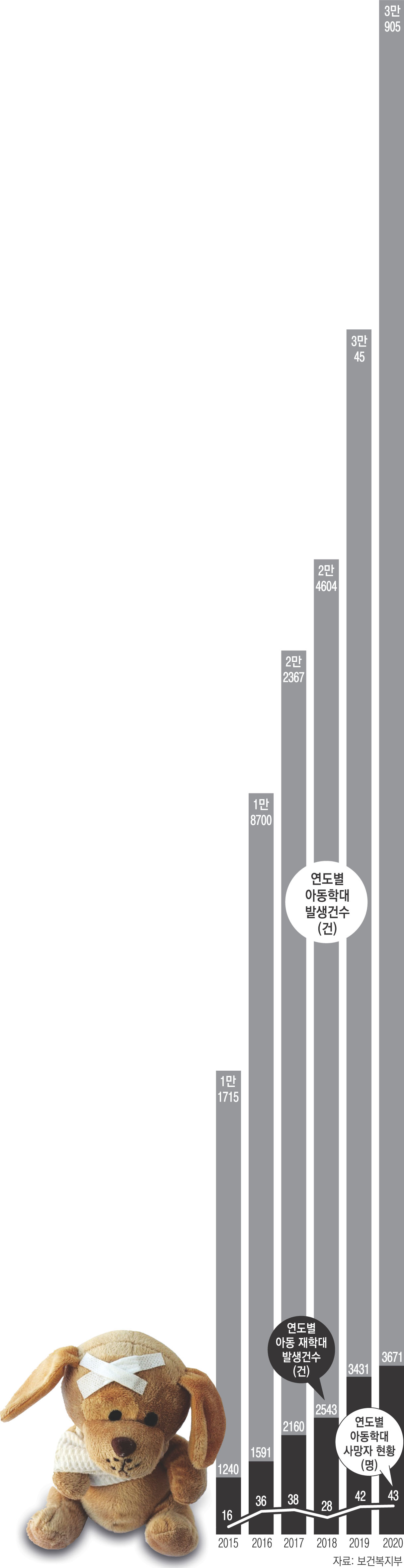 지난해 10월 생후 16개월 된 입양아 정인이가 숨진 사건 이후 아동학대에 대한 처벌을 대폭 강화하는 이른바 ‘정인이법’이 통과됐지만, 최근 서울 강동구에서 의붓어머니로부터 학대를 받은 세 살배기 아동이 사망하는 사건이 또 발생했다. 이처럼 학대를 당해 숨진 아동은 한 달 평균 3명이 넘는 것으로 나타났다. 아동학대와 재학대 발생건수는 최근 5년 사이 세 배 가까이 증가했다. 전문가들은 처벌 강화가 능사가 아니라 아동학대의 사각지대가 최소화될 수 있도록 하는 예방적 활동이 훨씬 중요하다고 입을 모았다.