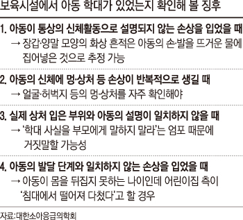 보육시설에서 아동학대가 있었는지 확인해 볼 징후