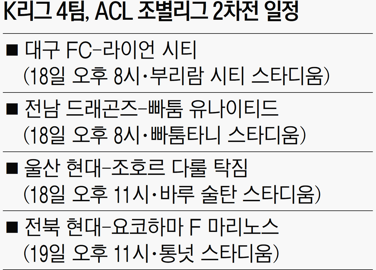 이근호(37·대구)와 김신욱(34·라이언 시티)이 아시아챔피언스리그(ACL) 조별리그 통과를 두고 적수가 돼 격돌한다.