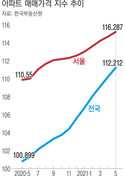 한국부동산원 통계를 보면 서울 아파트값은 지난해 6월 첫째주(6월1일 기준) 이후 지난 5월 넷째주까지 51주 동안 단 한 주도 내린 적이 없다.
