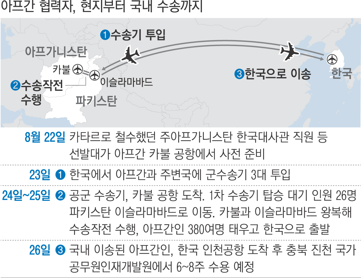 아프가니스탄 현지에서 오랫동안 정부의 협력 사업을 함께해왔던 아프간 현지인 협력자 391명이 26일 한국에 도착했다.