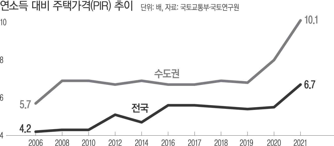 전국 평균 역시 같은 기간 5.5배에서 6.7배로 상승했다. PIR은 월급을 한 푼도 안 쓰고 모아