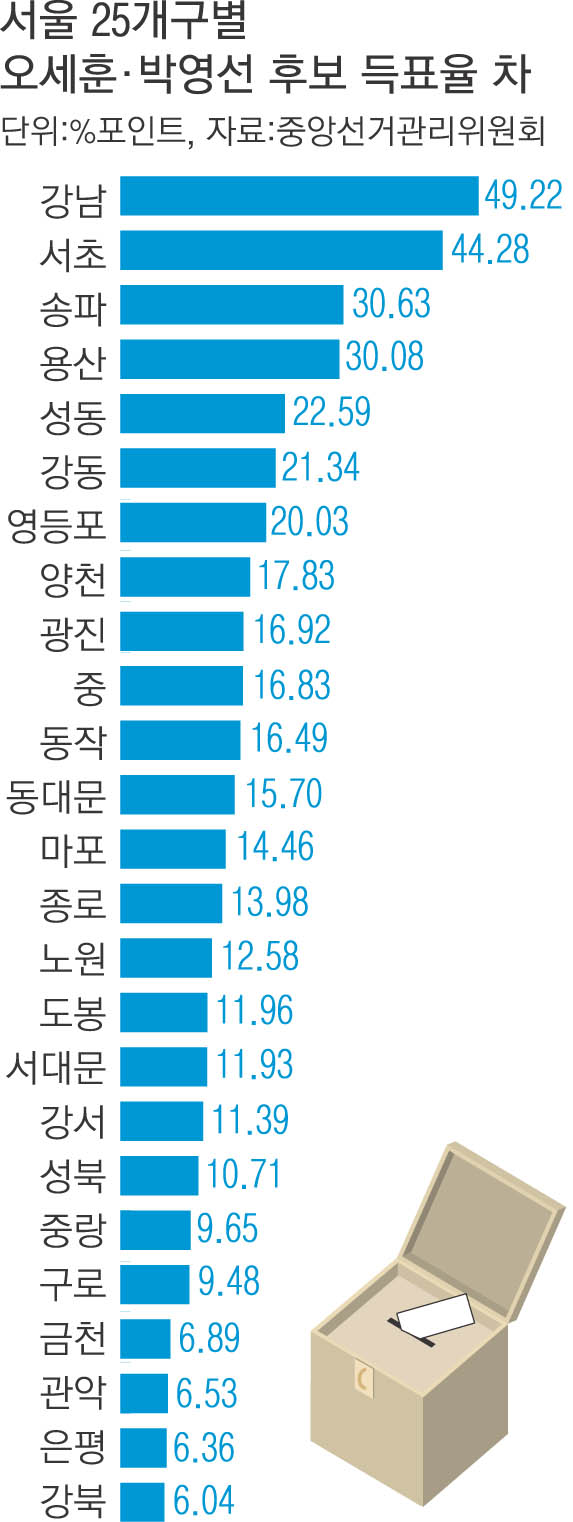 오세훈, 박영선 후보 득표율 차
