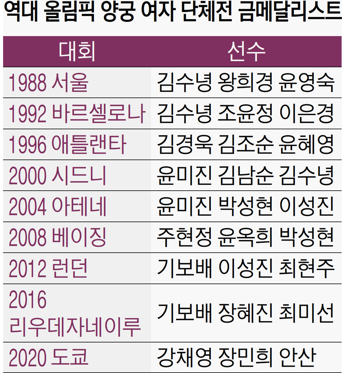 올림픽 양궁 여자단체전 금메달리스트