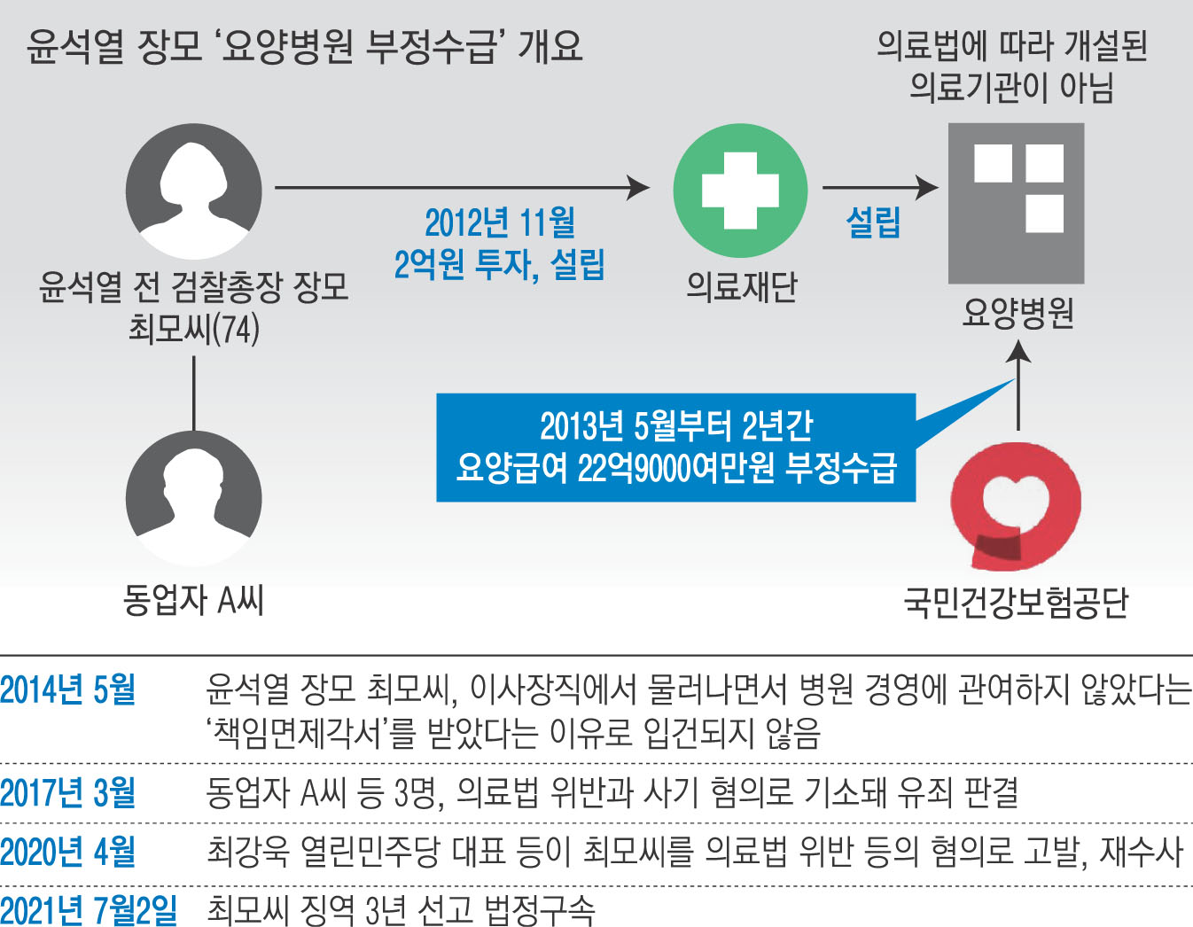 윤석열 전 검찰총장의 장모 최모씨(74)가 불법으로 요양병원을 개설하고