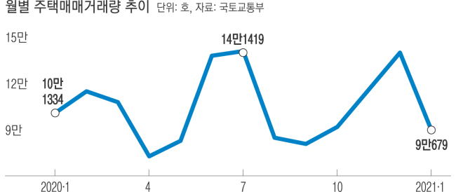 새해 들어 주택매매거래가 연말 대비 큰 폭으로 줄었다. 정부의 ‘2·4 공급대책’ 발표 이후 아파트값 상승폭도 둔화되고 있다.