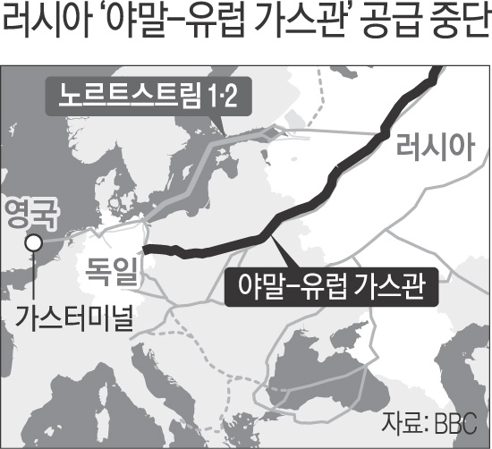 러시아가 유럽으로 향하는 ‘야말-유럽 가스관’ 공급을 중단하면서 유럽 천연가스 가격이 역대 가장 높은 수준으로 치솟았다.