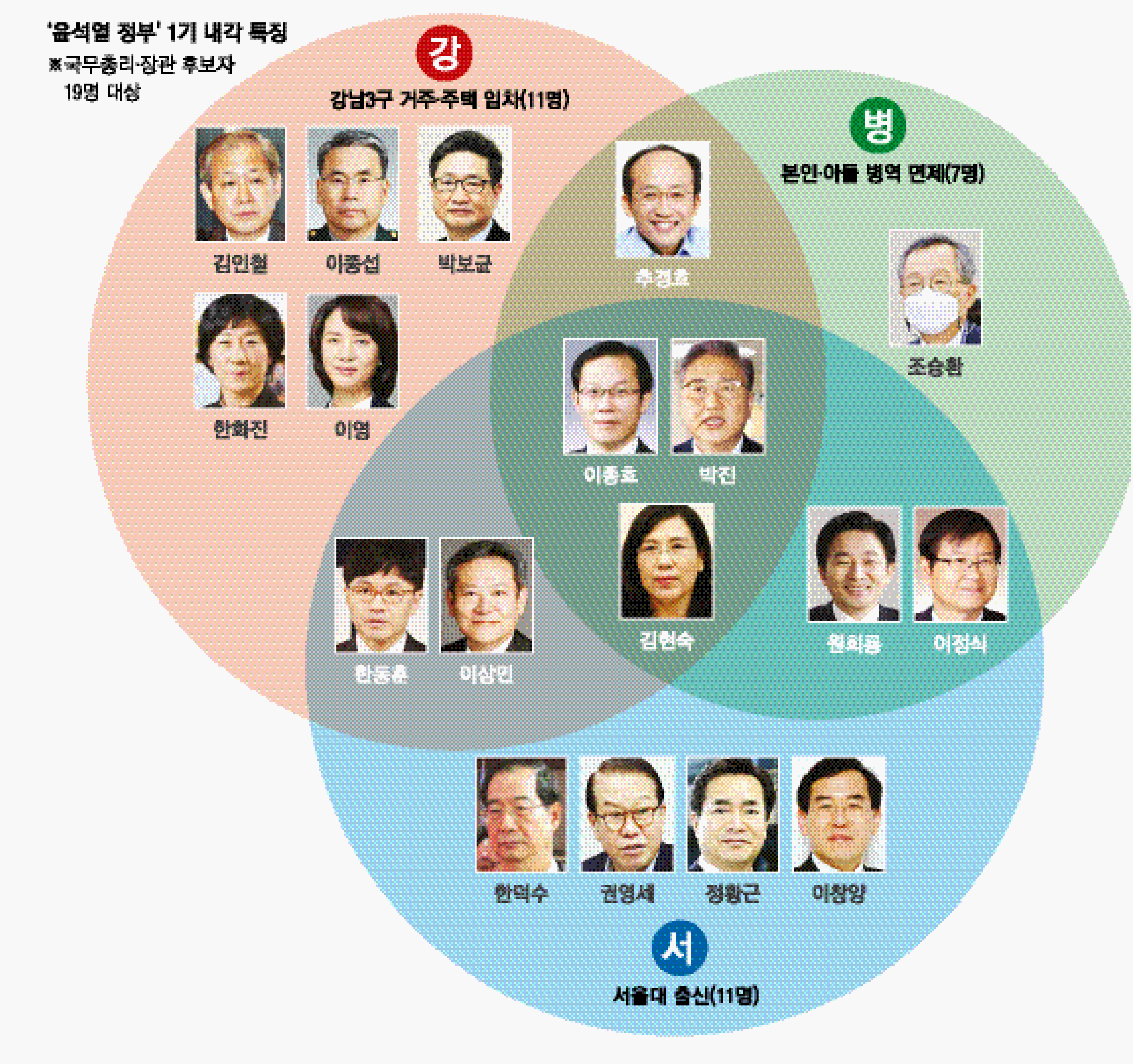 [윤석열 내각 인사검증](하) 강남 거주·병역 면제·서울대…‘강병서’ 내각
