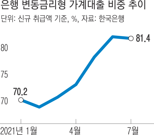 은행 변동금리형 가계대출 추이