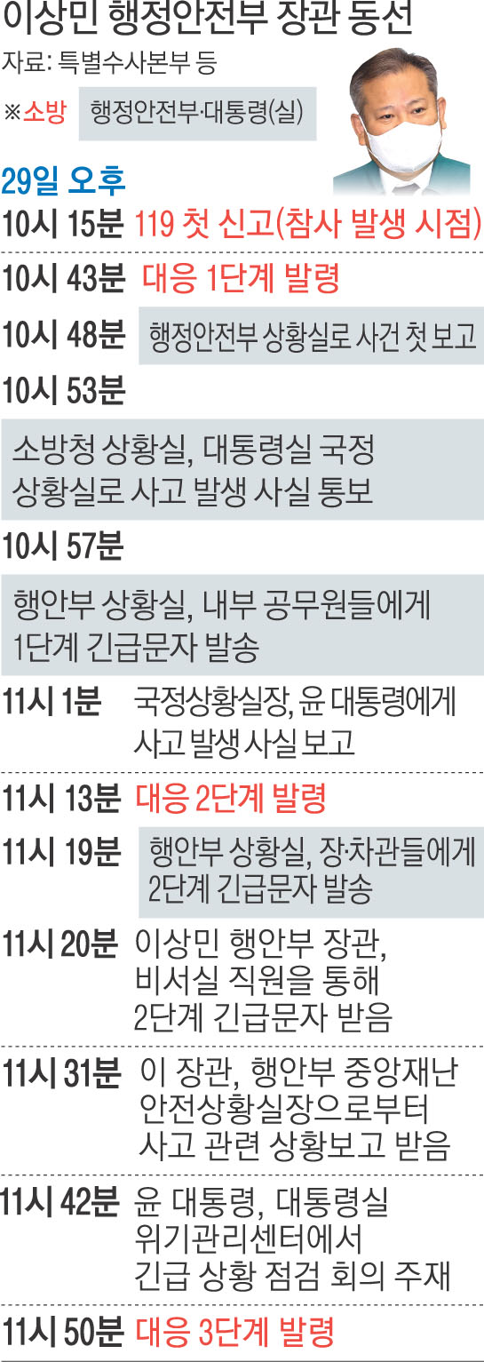 이 장관의 사고 인지 전까지 행보는 여전히 미궁이다. 윤희근 경찰청장과 김광호 서울경찰청장, 오세훈 서울시장 등의 당일 동선이 밝혀진 것과는 대조적이다.