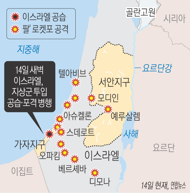 이스라엘은 공격을 멈춰달라는 국제사회의 호소에도 팔레스타인 사람들이 거주하는 가자지구 접경에 지상군 수천명을 보냈다.