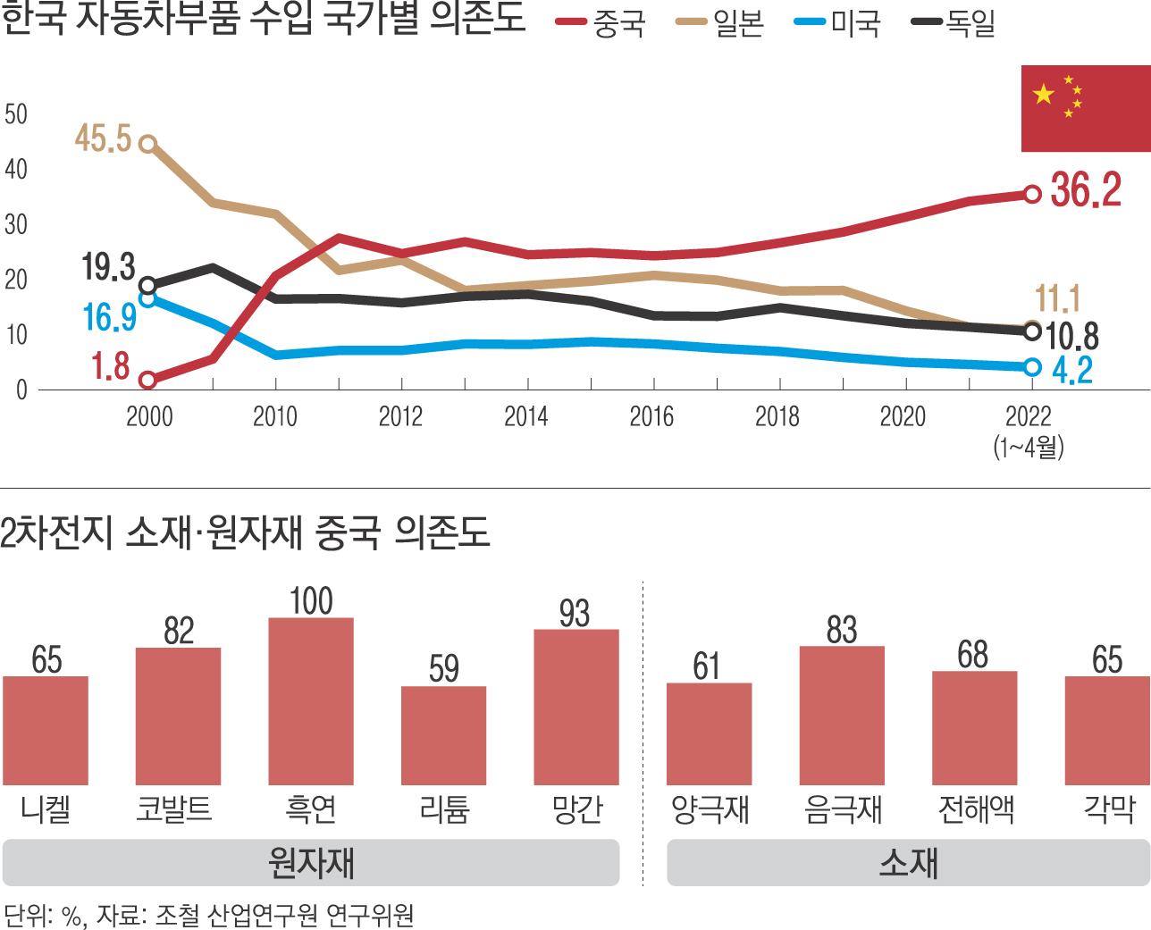 국산 자동차의 중국산 부품 의존도가 갈수록 커지고 있다는 분석이 나왔다.