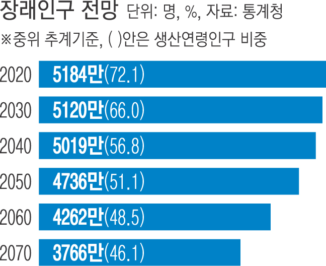 2070년에는 한국 인구수가 3700만명대로 쪼그라들 것으로도 예상됐다.