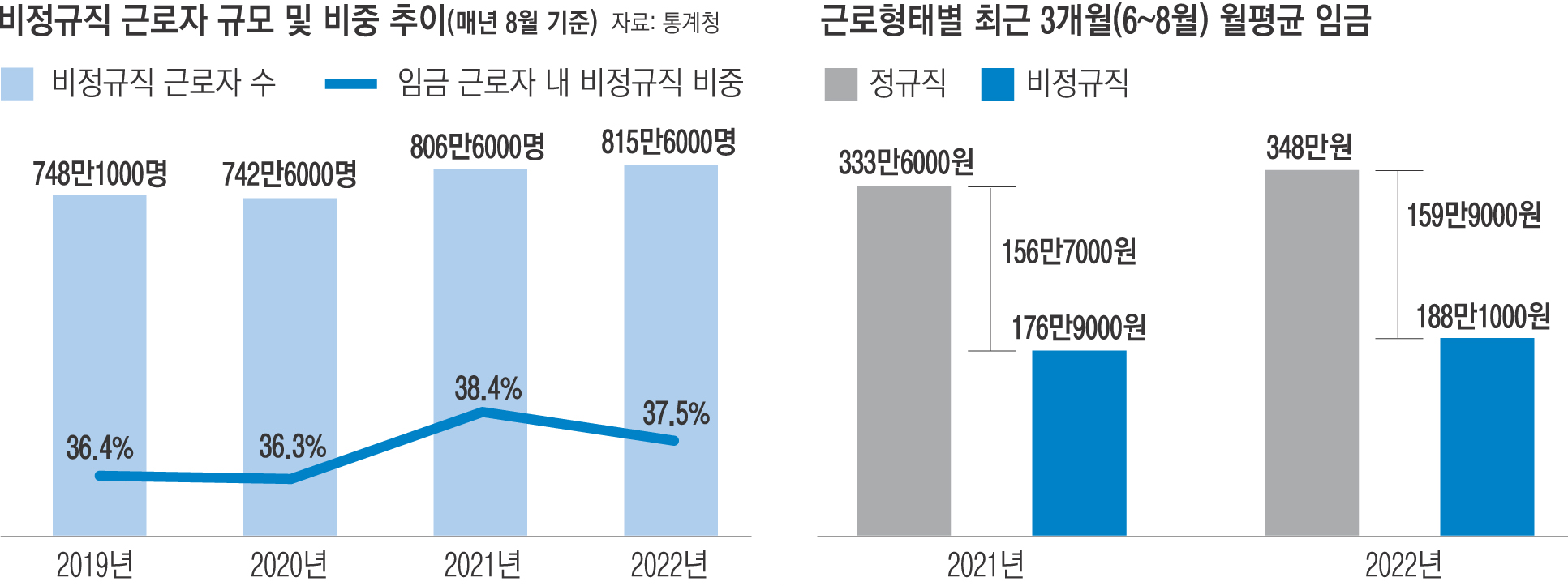 정규직 348만원·비정규직 188만원…월평균 임금 격차 ‘역대 최대’
