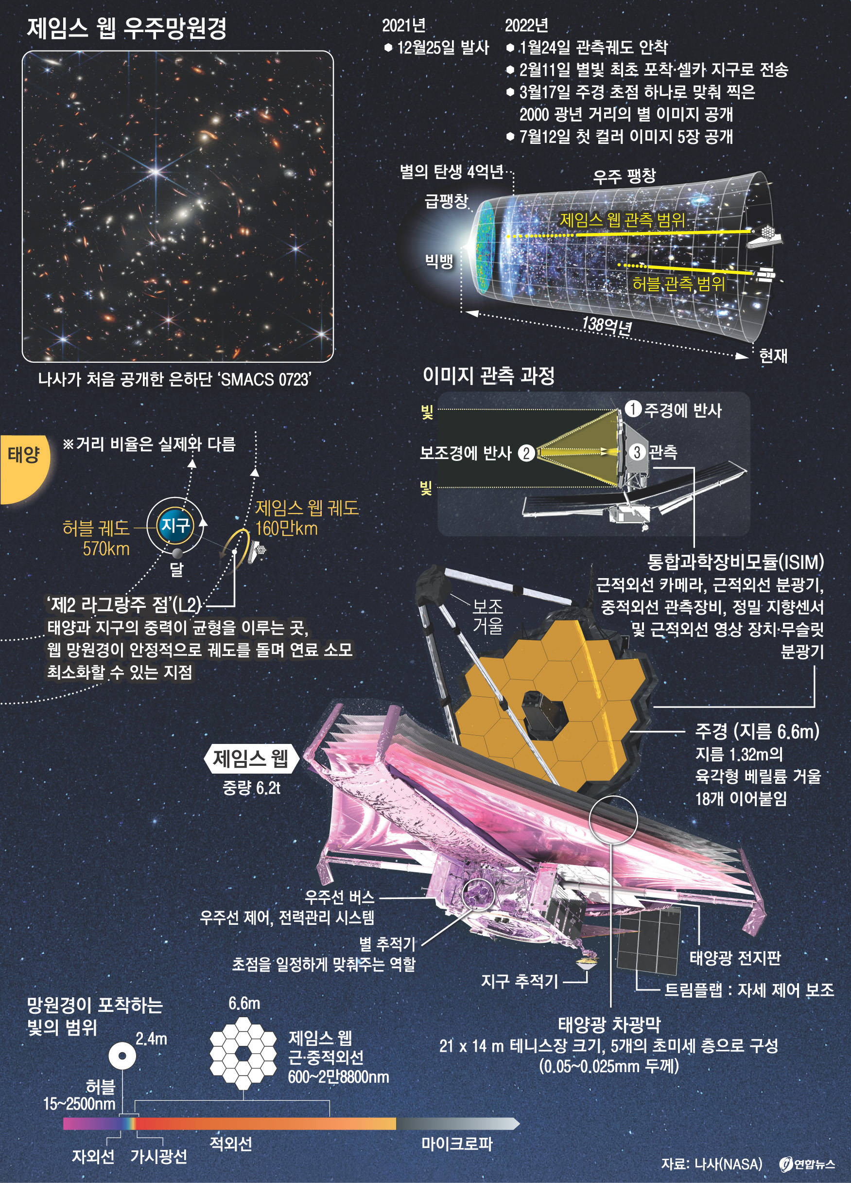 제임스 웹 망원경은 발사 뒤 반년 넘게 각종 장비의 점검을 거쳐 천체 사진 촬영에 들어갔고, 이날 완전한 컬러 상태의 결과물을 내놓았다.