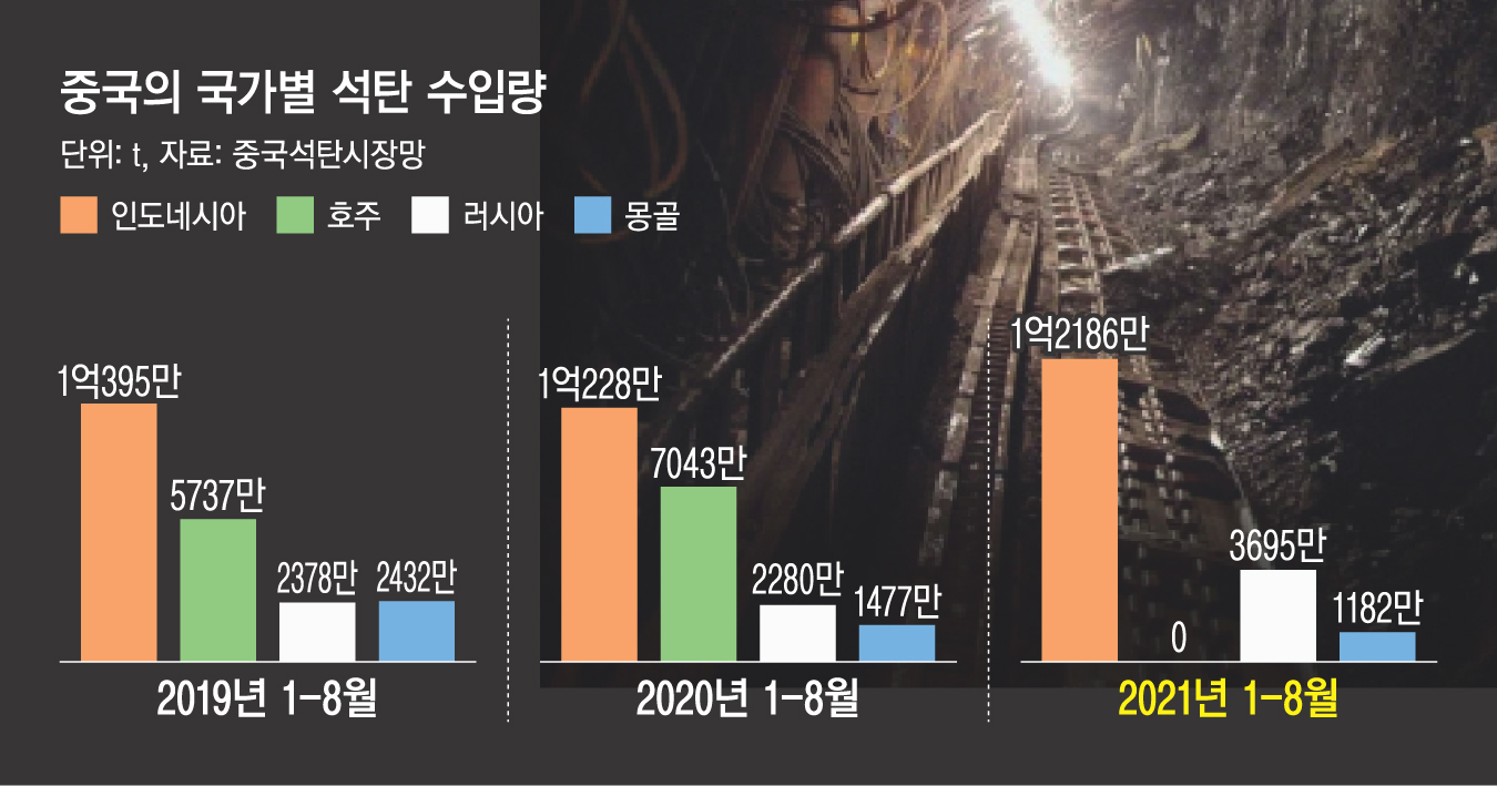 중국의 국가별 석탄 수입량