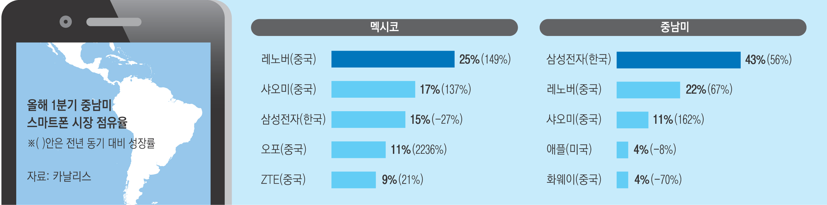 중국 스마트폰 업체들이 삼성전자의 ‘텃밭’으로 불리는 중남미 시장에서 무서운 성장세를 보이고 있다.