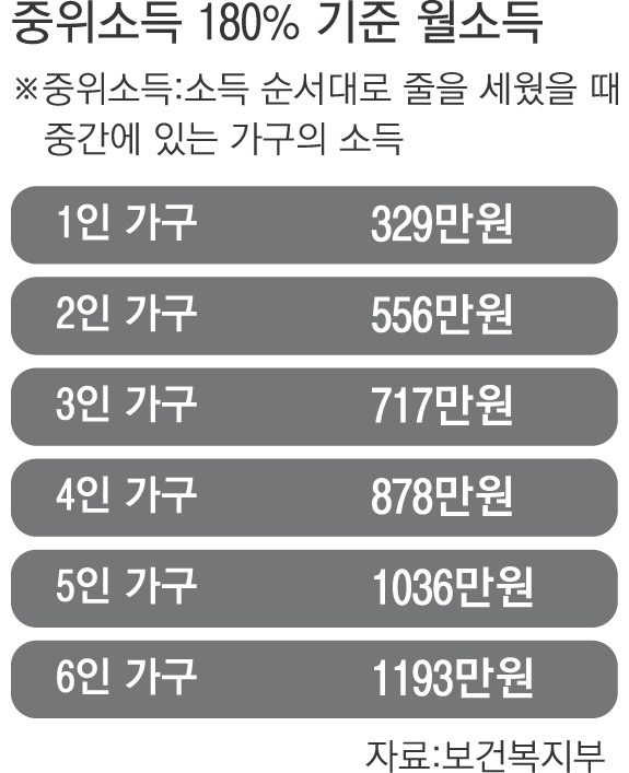 중위소득 180% 기준 월소득