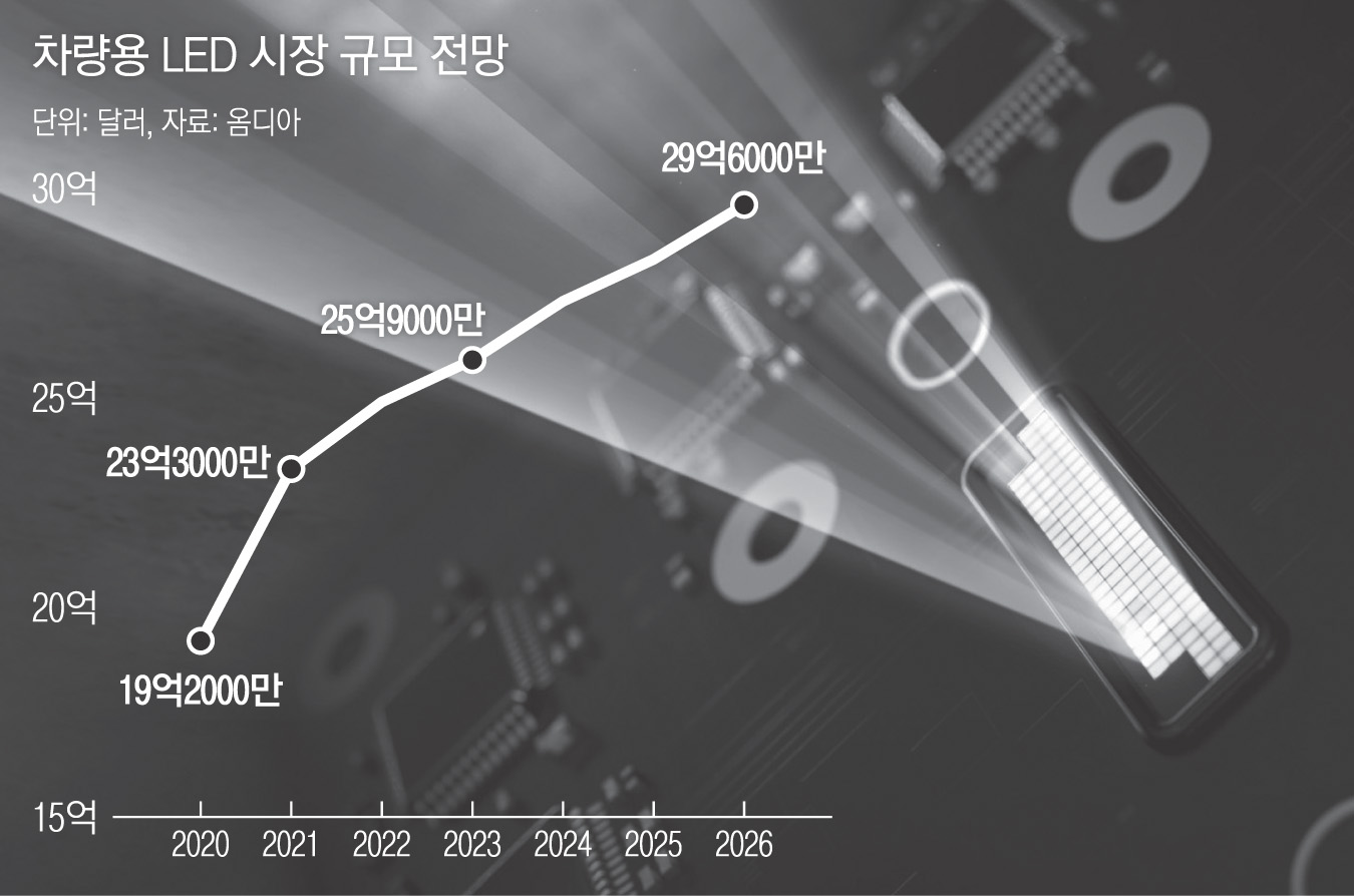 삼성전자가 야간에 자동차 상향등을 켜고 운행하다가 마주 오는 차량이 있으면 그 차량을 비추는 부분만 빛을 알아서 차단해주는 차량용 발광다이오드(LED) 모듈을 출시했다.