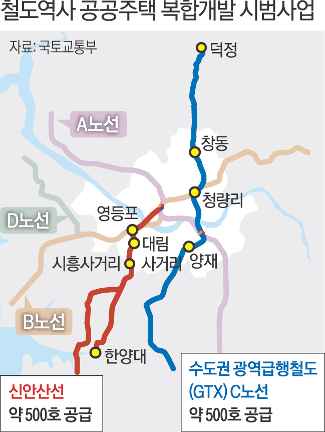 국토교통부와 서울시, 경기도는 9일 신안산선, GTX-C(노선) 등 신규 철도역사를 활용해 공공주택을 복합개발하는 사업을 추진한다고 밝혔다.