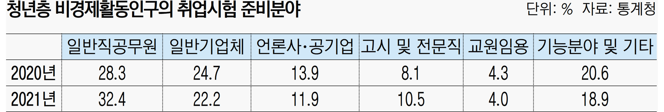 올해 청년층 취업준비생이 85만9000명으로 역대 최고치를 기록했고 10명 중 3명은 일반직공무원 시험을 준비하는 것으로 나타났다.