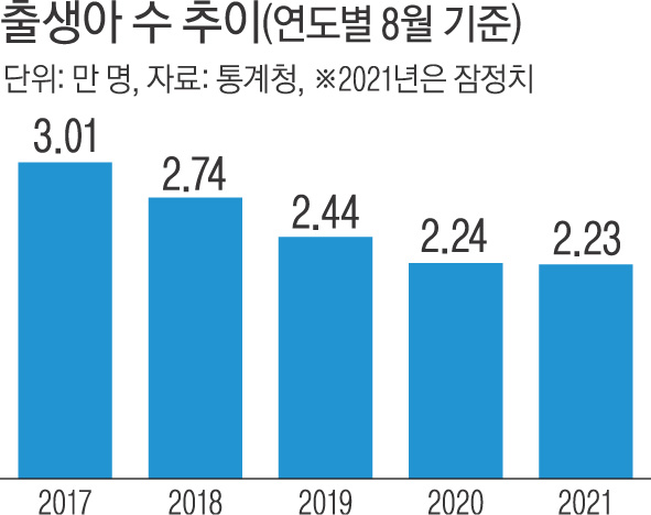 사망자 수가 출생아 수를 앞지르는 자연감소도 22개월째 이어졌다. 특히 코로나19 델타 변이 확산 영향으로 혼인이 급감하면서 저출산이 심화되고 있다.