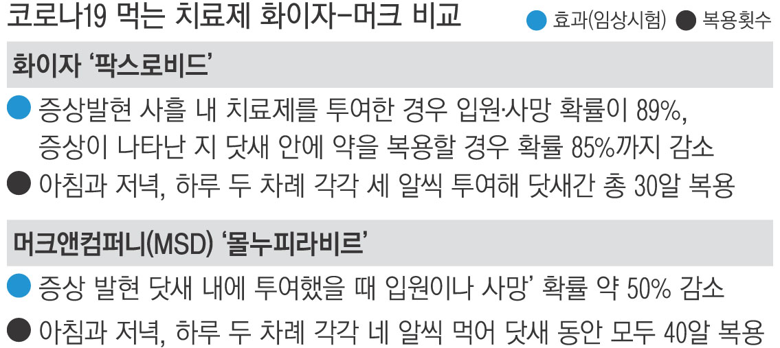 최근 임상시험 결과 일부 경구용 치료제는 코로나19로 인한 입원 및 사망률을 최대 90% 가까이 낮추는 것으로 확인돼 향후 고위험군 확진자 등의 치료과정에서 이들이 ‘게임체인저’ 역할을 할 수 있을 것이라는 기대가 나온다.