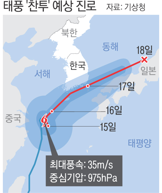 제14호 태풍 ‘찬투’가 우리나라를 향해 북상 중이다.
