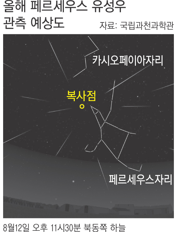 국립과천과학관은 국제유성기구(IMO) 발표를 인용해 페르세우스 유성우가 오는 12일 밤 10시쯤부터 다음날인 13일 새벽 5시쯤까지 집중적으로 관측될 것이라고 밝혔다.