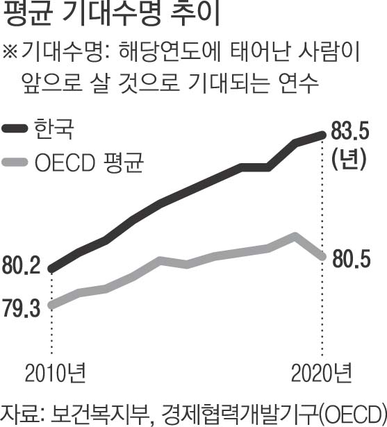 한국의 기대수명은 83.5년으로 10년 전 조사 때보다 3.3년 증가했다.
