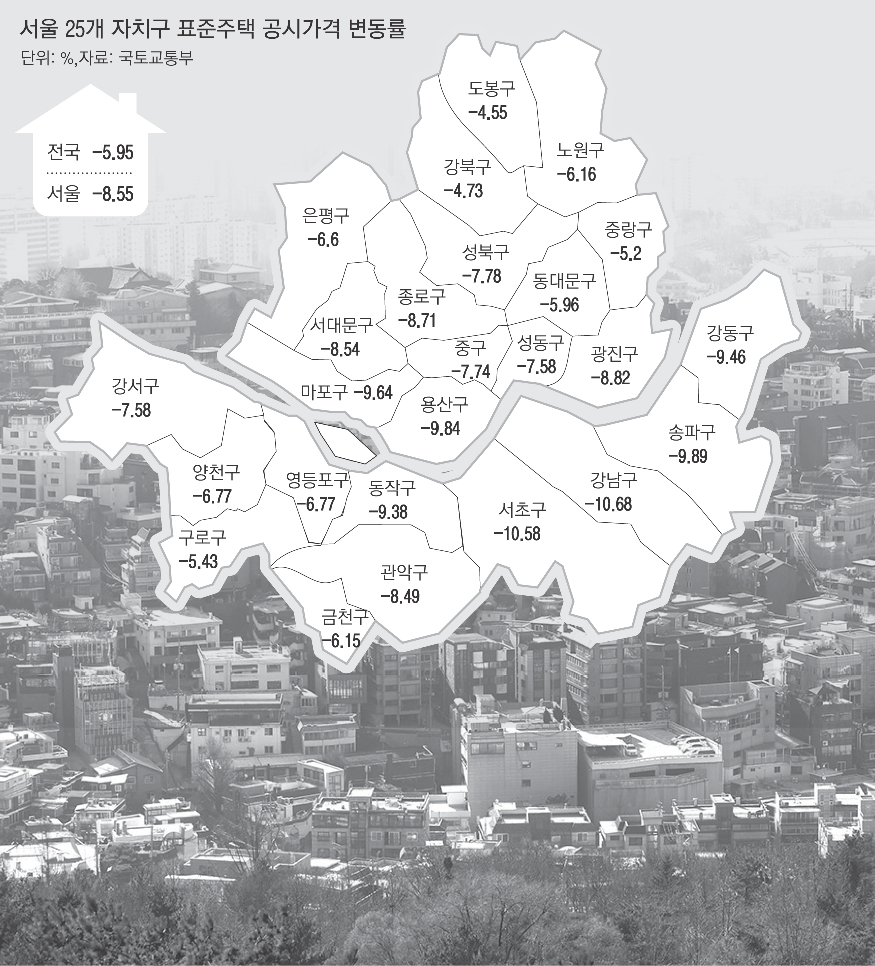 국토교통부가 14일 발표한 2023년 표준지와 표준주택 공시가격(안)은