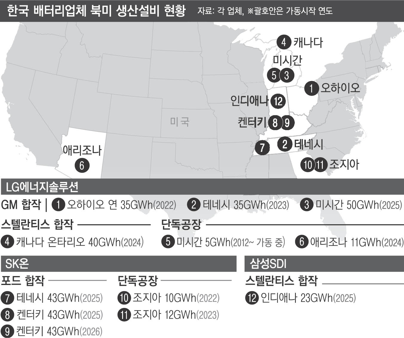 배터리업체 북미 생산설비 현황