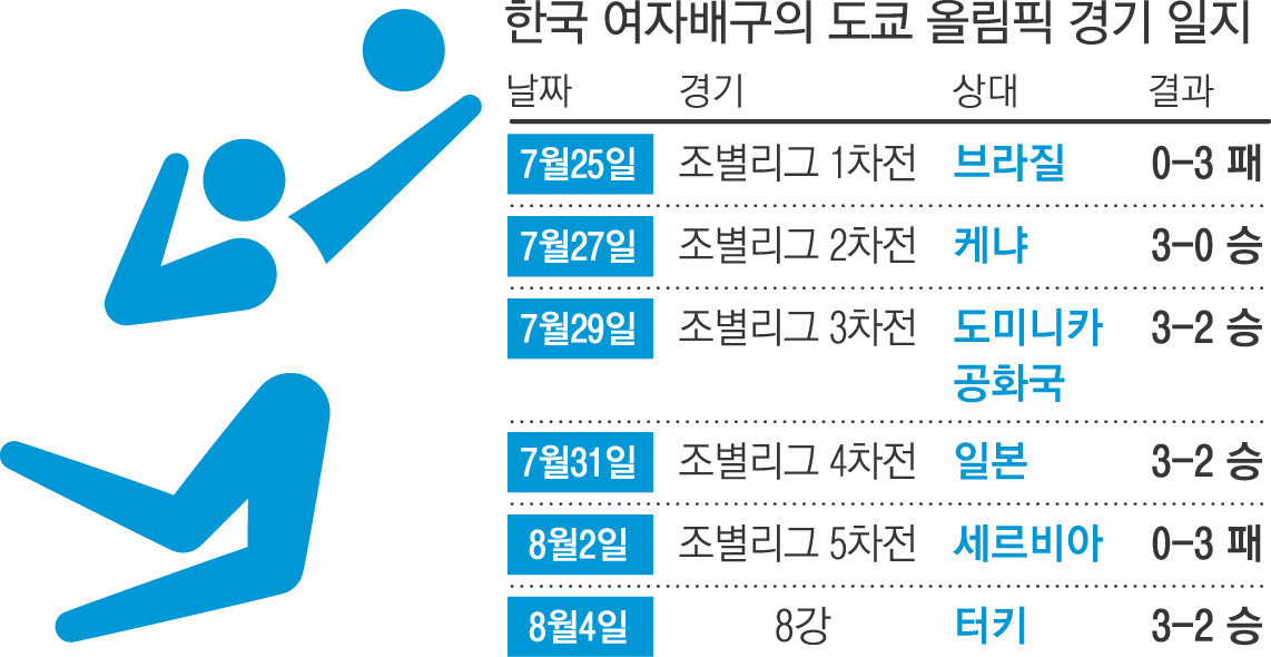김연경과 김수지, 양효진, 김희진, 박정아 등 12명의 선수들이 '원팀'된 이들은 4강을 이룩하면서 하나의 목표를 위해 쉼 없이 눈물과 땀을 흘려 여자배구의 값진 결과를 만들어냈다. 2021년 8월 4일 그들은 또 한 번 기적을 만들었다.