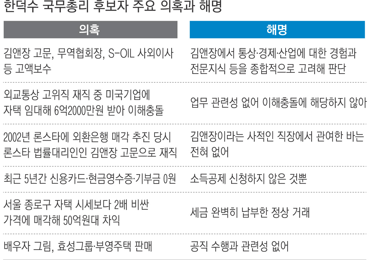 한 후보자는 고액 급여·고문료와 각종 이해충돌 사안, 대기업과의 미술품 거래 논란 등이 도덕성 관련 쟁점으로 떠오른 상태다.