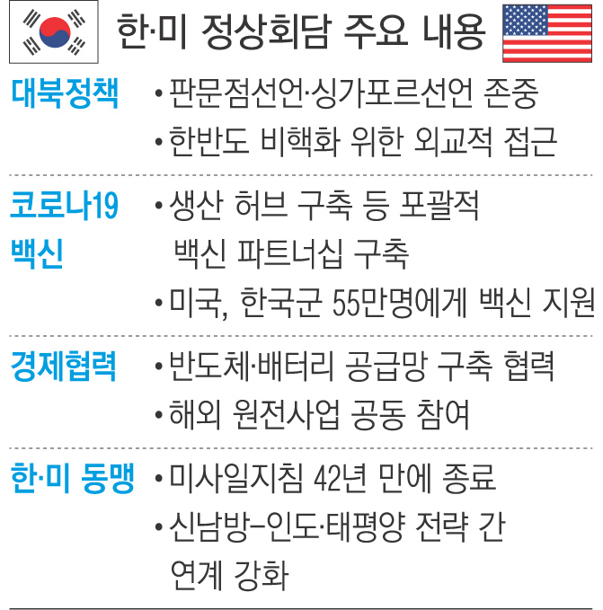 문 대통령은 대화와 외교를 통한 한반도 문제 해결에 대한 한·미 공조를 확인하고, 미국의 백신 기술 이전을 통한 백신 생산 허브 구축의 발판을 마련하는 등 성과를 얻은 것으로 평가된다.