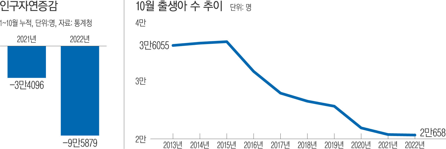 저출생에 코로나19 영향으로 사망자 증가세가 이어지면서 올해들어 10월까지 인구 감소가 지난해 3배 수준으로 확대됐다.