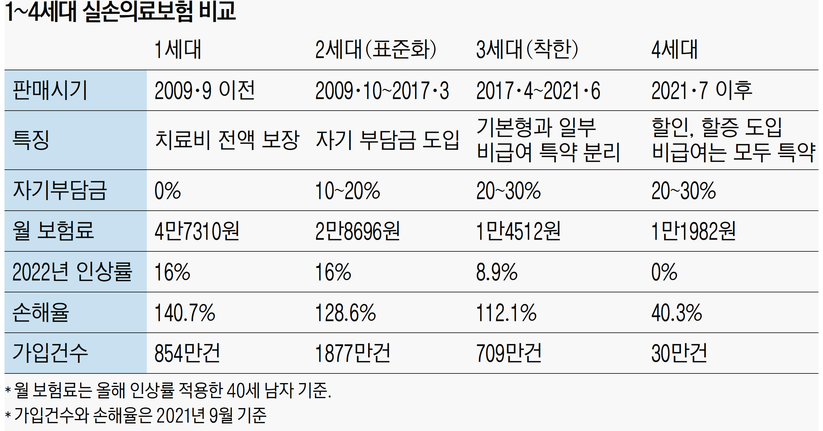 1~4세대 실손의료보험 비교