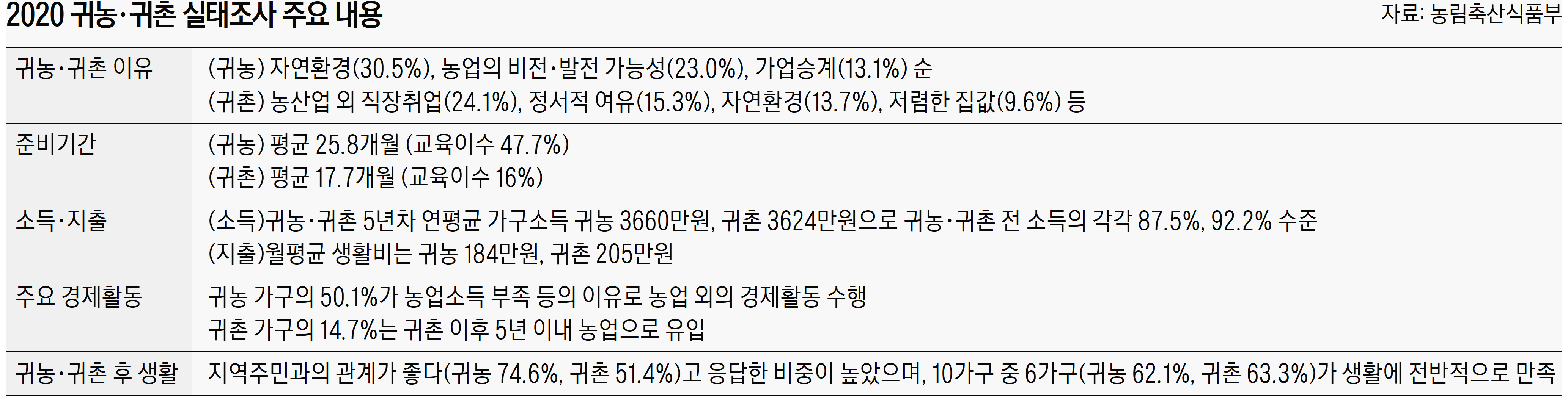 2020 귀농·귀촌 실태조사