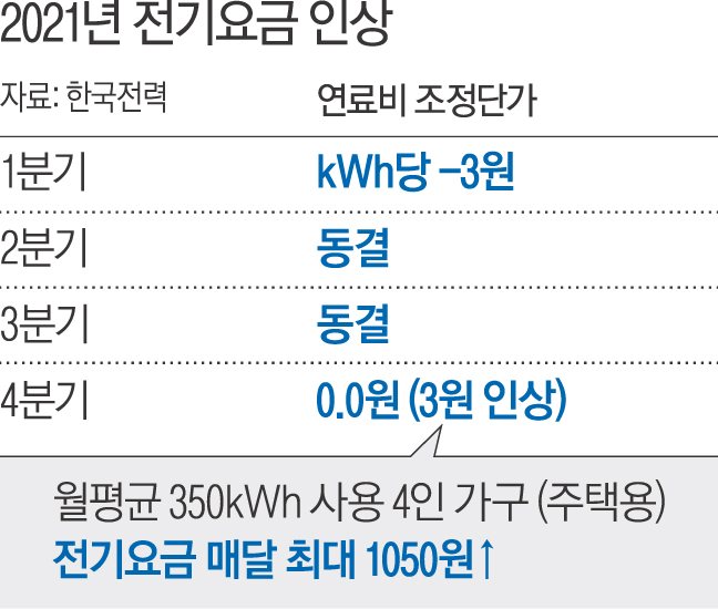 내달 전기료 인상…4인 가구 350kWh 기준 1050원 ↑