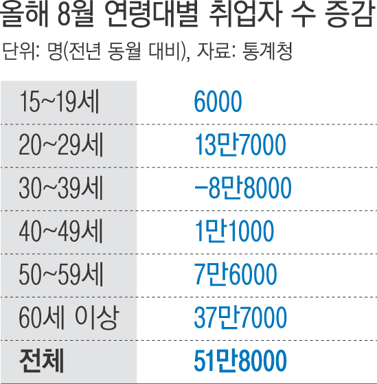 코로나19 재확산으로 강화된 거리 두기 조치가 이어지면서 증가폭은 줄었지만 여전히 6월(58만2000명), 7월(54만2000명)에 이어 석 달 연속 50만명대를 유지했다.